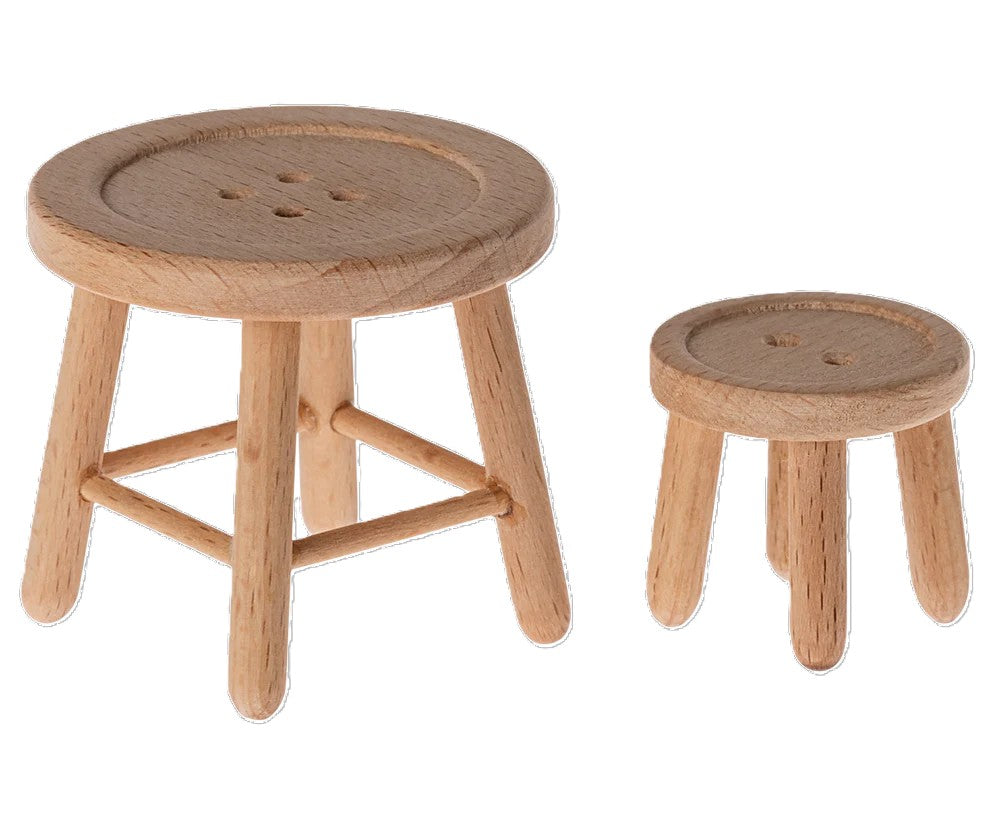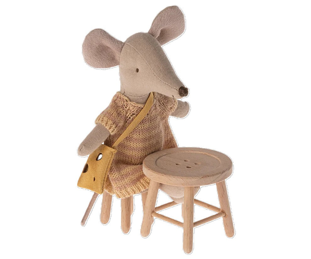 MailegA stool and table set made for the mouse family. It is inspired by buttons and can be mixed with other mice furniture and accessories to create a lovely home. It fits perfectly into the Mouse Hole Farmhouse.
