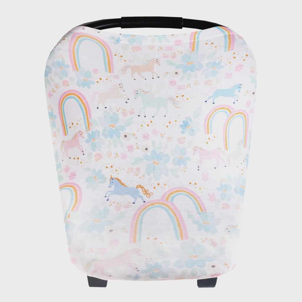 Stretchy fabric fits most all car seats, shopping carts, high chairs and nursing mothers. It can also be a trendy infinity scarf!